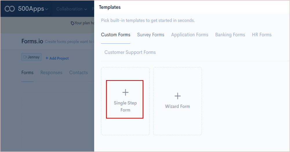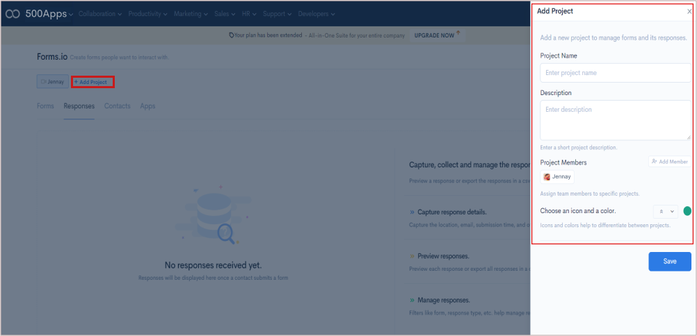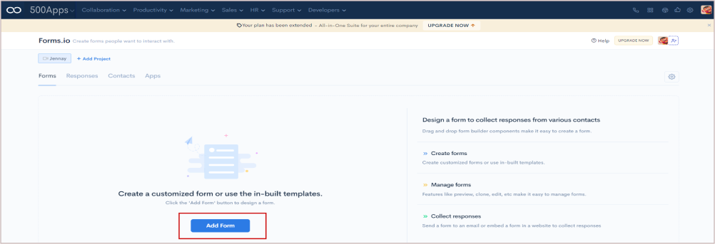 Go to Productivity > Select Forms.io > Click Contacts