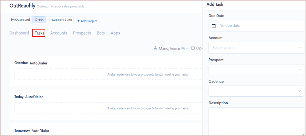 Go to Sales > Select the OutReachly