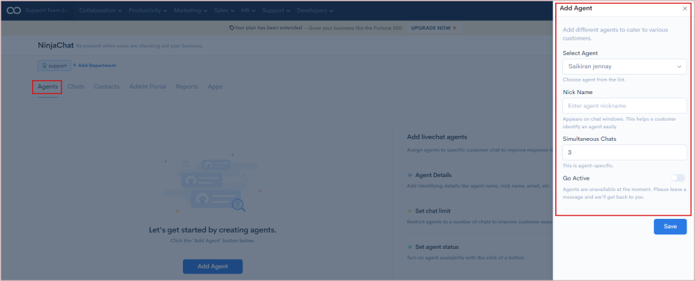 Go to Support > Select the NinjaChat